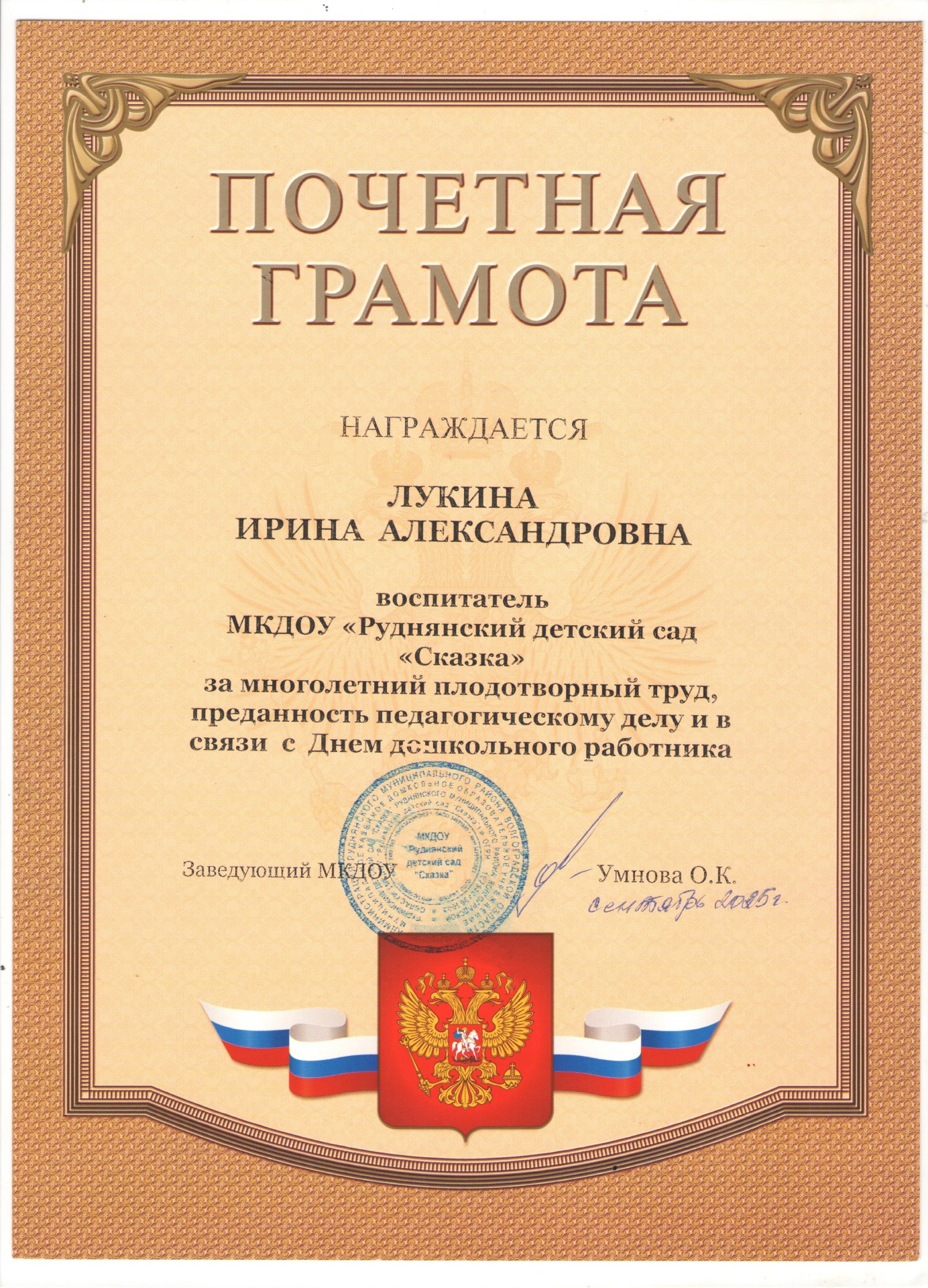 Главная Педагогический… 4. Лукина Ирина… Награждения