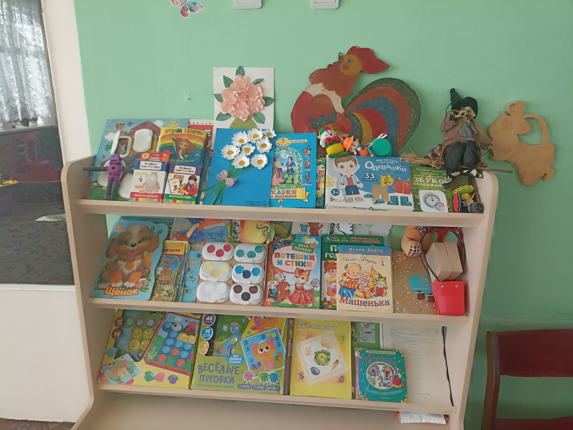 Группы оборудованы мини-библиотеками, в которых имеются книги разных жанров: сказки, рассказы, познавательная литература, стихи, портреты детских писателей и поэтов. Произведения соответствуют возрасту детей и текущей календарной теме периода. В детском саду руками воспитателей создан «Книжкин дом»
