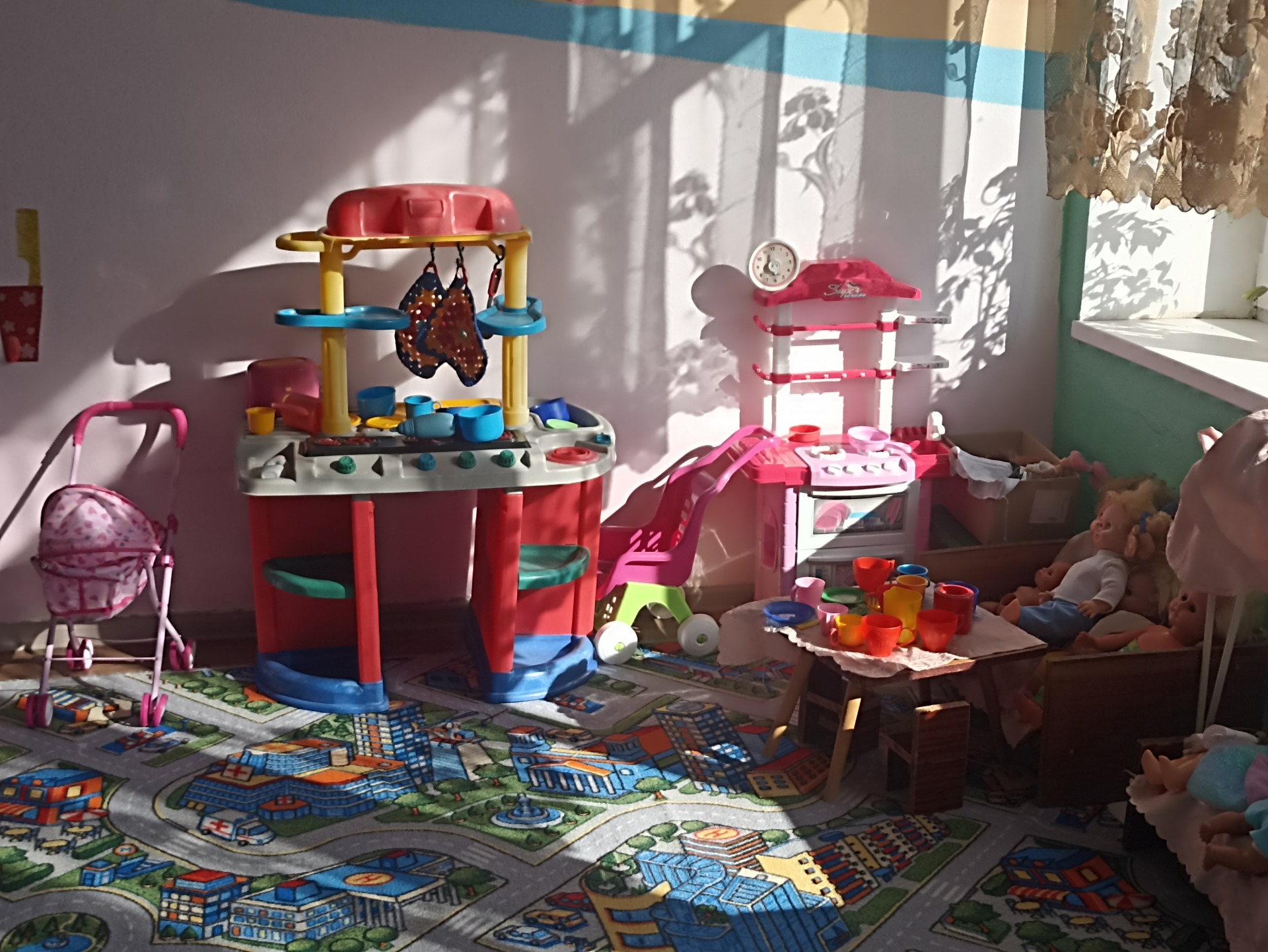 «Центр сюжетно-ролевых игр», где дети творчески воссоздают заинтересовавшие их стороны действительности, отношения людей. События в играх дети отражают различными бытовыми сюжетами (магазин, поликлиника, парикмахерская, семья и др.); имеются атрибуты для сюжетно - ролевых игр наборы игрушек и предметов, помогающие отобразить социальный быт: мебель, посуда, игрушки - орудия труда, куклы, отражающие половую принадлежность, фигурки животных (взрослых и их детенышей); предметы – заместители.